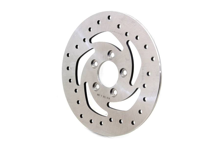 Raw machined stainless steel brake disc features a 10.5 diameter with 3/8 diameter mounting holes counter bored.