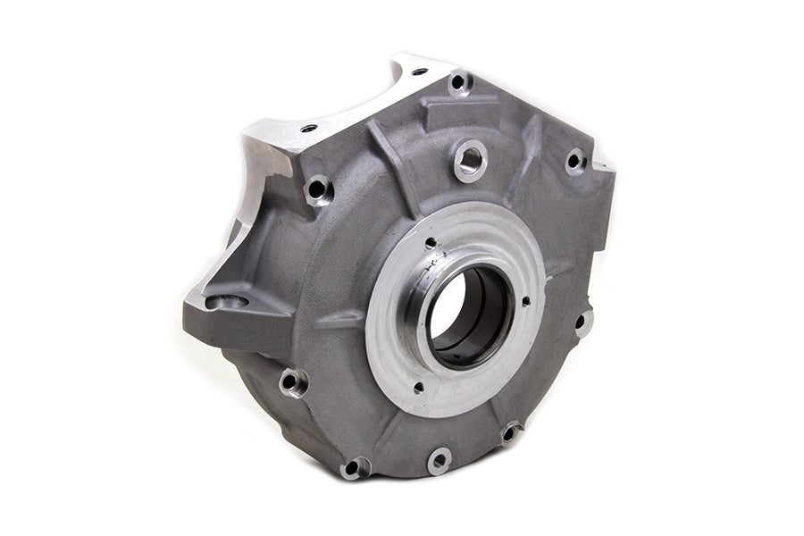 Left side engine case for aluminum electric start inner primary application on 1965 Panhead and 1966-69 Flat Side Shovelhead engines. Left hand case must be fit to existing right side case. Cylinder deck height must also be machined to match to original right side case. Case set line lapping required. Case may require clearancing for cast inner primary vent tube. Requires the use of case race cylinder base studs breather tube bearing assembly and drain plug and will accept Timken roller bearing assembly all available separately. Features a blank number boss.