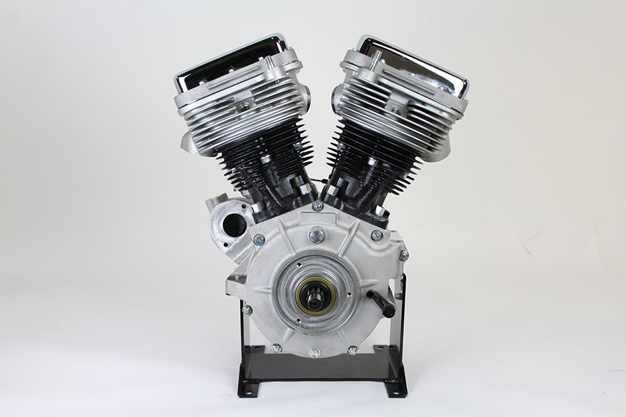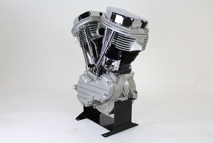 Bastardo Panhead long block motor with 4 stroke is assembled and tested for oil pressure. **NOTE: Carburetor and charging system is not included. *NOTE: Panhead with Shovelhead power features: Shovelhead intake and exhaust valves and the exhaust ports are Shovelhead style to accept single bolt Shovelhead flanged headers. Redesigned intake ports accept a Shovelhead o-ring intake manifold. This motor breathes and runs like a Shovelhead stroke bore and cubic inches. Manufacturer's Statement of Origin is supplied.