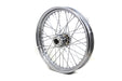 Front 23 x 3.00 dual disc wheel assembly features a chrome hub with all internals bearings installed spokes and a chrome rim laced and trued. Use with a 130/60R tire and 130/60 tube. *Note: UPS may consider this part as packaged oversize for shipment as compared to the actual weight which will result in higher shipping costs.