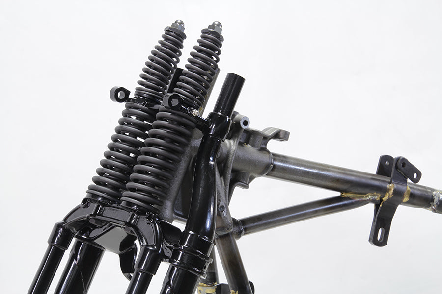 Frame and fork kit includes replica Knucklehead 29° rake rigid frame and 28 inline spring fork assembly. *NOTE: There are no serial numbers stamped on the replica frame. V-Twin MFG supplys a Bill of Sale only referencing the part number.