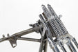 Frame and fork kit includes replica retro rigid 30° rake frame and 32 inline spring fork unit that features chrome front legs outer springs rockers and chrome rear leg. *NOTE: There are no serial numbers stamped on the replica frame. V-Twin MFG supplys a Bill of Sale only referencing the part number.