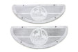 Footboard inserts feature alloy construction depicting the 1940 New York World's Fair logo. Attaches by four screws per side. Installation requires drilling of D footboards install by screw or rivets not included has 4 holes for mounting on one side. Inlcudes 8 pieces 6 X 32 X 3/8 fillister screws with nyloc nuts for mounting. Footboard pads are die cast from permanent tooling exclusively by V-Twin Manufacturing!