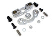 Spring Fork triple tree kit is for inline forks with chrome components that include topinline tree T bar clamp and screws to attach risers. This will fit OE Wyatt Gatling and Paughco inline forks. Also included are a set of Riser Adapter Insert Set which may be screwed in the rear legs. Legs must be tapped 3/4 x 16 to accept these inserts. NOTE: Order top nut separately.
