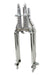 Kit includes front and rear chrome legs chrome outer springs chrome rockers and zinc plated rocker studs. It comes completely assembled with a 1 stem with 1 x 24 thread. Order bearing neck kit axle kit top tree and handlebars separately. Some assembly may be required. Bottom of neck is larger in diameter to accommodate the Lower Race. Rear fork leg is not tapped. *NOTE: We measure from the top of the rear leg (tube) to the front axle center line. This complete replica Spring Fork assembly is a product of 14 separate processes: Tubing Hydraulic Swage Press Investment Casting Forging Flattening Press Robotic Welding Brazing Polish Chrome Paint Spring Winder Machine Shop Drill Shop and Packaging.