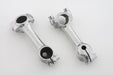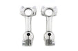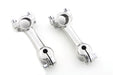 Hellings & Stellings style riser set will accept 1 handlebars and will fit with an original spring fork handlebar cut down from stock. Set is natural finish cast stainless steel. The Stellings and Hellings riser set are reproduced accurately from investment cast stainless steel. Riser mounting will require a stock set of handlebars to be cut down so there is a short stub remaining to accept the risers the bar stub will be 1 . The riser set is offset to mount to the bar end studs to make the riser stems parallel when installed. V-Twin offers a top tree with stubs as an alternative to cutting down a set of Spring Fork bars. Risers are cast of stainless steel machined to specs and then polished. you will need the stock handlebar cut down to 11 overall width. Please measure twice cut once!