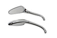 3-D style mirror set is die cast chrome with teardrop style mirror and stems built in. Set includes right and left sides.