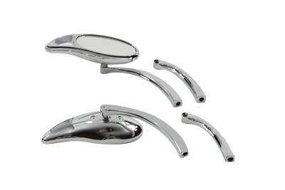 Tear Drop Mirror Set with Billet Long Stems Chrome 1965 / UP All models for left and right side application