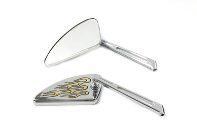 V-TWIN MANUFACTURINGIn stockChrome tear drop mirror set with gold inlay flames features slotted billet stems. Set includes right and left side. FITMENT 1965 / UP All models f...