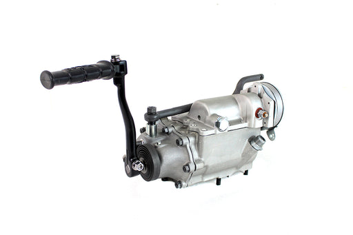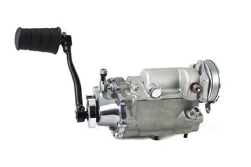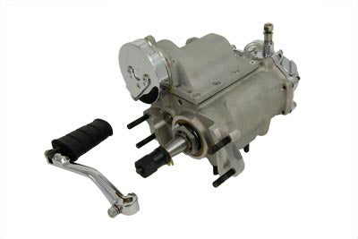 V-TWIN MANUFACTURINGOut of stockReplica 4-speed transmission assembly features a natural finish. Assembly includes FLH ratchet top and polished kick cover with black arm and sprin...