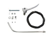 Polished cadmium front brake tube kit includes handle cable adjuster and crossover tube. Allows the use of the left side brake drum with 1949-1968 foot shift models with right hand brake hand assembly.