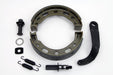 Rear brake shoe kit includes shoes wide cam thrust washer arm and pivot stud.