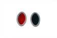 Replacement chrome cateye dash panel lens kit includes one green and one red lens.