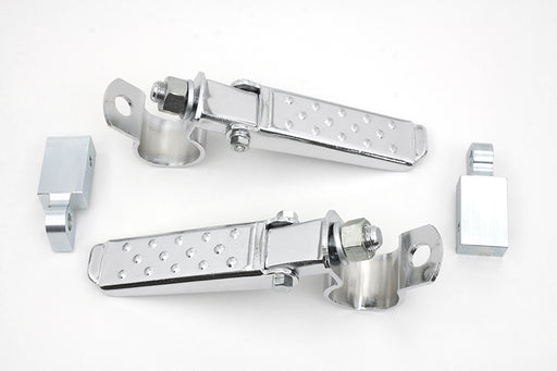 V-TWIN MANUFACTURINGIn stockClamp on footpeg sets are chrome and feature a rubber insert that provides a good grip and reduces vibration. Clamp these pegs to your frame or eng...