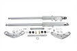 Chrome billet 41mm fork assembly with chrome billet sliders are 6 over stock with a total length of 37 . Stock length is 31 . Assembly includes chrome billet triple trees smooth chrome lower legs flush mount axle and chrome fork tubes assembled into the legs with chrome boot dust covers. Forks accept a single disc caliper and an 11-1/2 brake disc. The assembly can also be used on 1948-1984 FL 1971-1984 FX 1986-1999 FLST 1984-1999 FXST and all custom rigid frames.