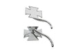 Chrome Maltese mirror set includes curved billet stems. Set includes right side left side and bolts.