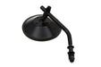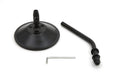 Custom round style mirror with black steel back and 4 round stem.
