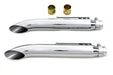Chrome 20 universal turn out muffler has 1-3/4 inner diameter inlet. Channel type mounting features concealed track on back. Sold in a quantity of two. Order clamps separately. Pipes feature baffles. **CAUTION: These exhaust products are not legal for sale or use in California on pollution controlled vehicles. These products are intended for non-highway only.
