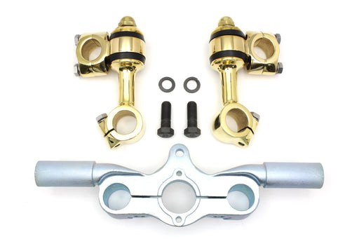 V-TWIN MANUFACTURINGOut of stockFlanders Spring Fork 4 riser set features brass plated dog bone risers with a zinc plated offset triple tree. 4 dog bones are polished solid bras...