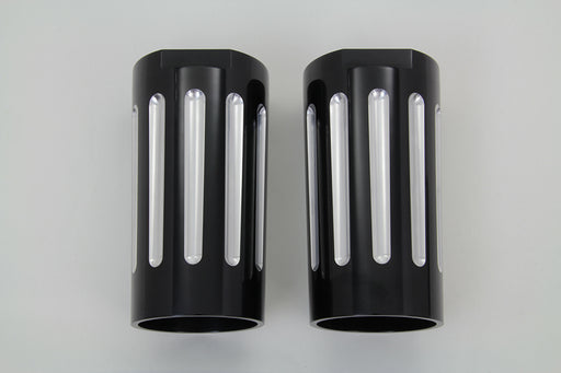 Black Fork Slider Cover Set with Chrome Strip 1949 / 1984 FL 1980 / 2013 FLT 1984 / UP FLST 1980 / 2013 FLHT 1970 / 1984 FLH