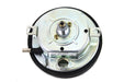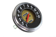 Replica speedometer has a ratio of 2:1 and features a black glass lens with numbers reading 1-12. Grey inner housing is gold with an orange needle. Features a knurled knob. Accepts plug in lamp socket not included. Big Twin fat bob speedometer features external threads for cable. The face features the accurate color for the years listed. The numerical graphics are silk screened on glass as original. *NOTE: Must order cable and mount kit separately. *NOTE: Accurate face design needle and colors for years noted although it fits any 2:1 ratio application. *NOTE: Use with 10 or 11 tooth speedometer drive gear with the appropriate spiral drive gear installed on transmission cluster gear.