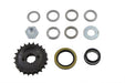 22 Tooth engine sprocket conversion kit includes splined sprocket motor nut with lock tab engine seal spacer and shims.