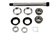 Parkerized swingarm pivot kit includes races bearings spacers lock tab and pivot pin.