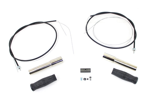 V-TWIN MANUFACTURINGIn stockSingle handlebar throttle cable assembly with black grips. Includes 2 chrome end plugs for grips.FITMENT 1974 / 1980 FX 1974 / 1980 FL 1974 / 198...