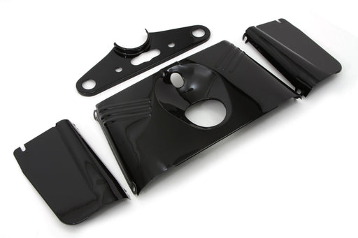 V-TWIN MANUFACTURINGIn stockBlack triple tree cover kit has a 3 angled rib design and includes tree cover right left and front panels.The four piece kit features hydra-glid...