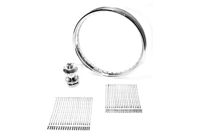 V-TWIN MANUFACTURINGOut of stockReplica 18 X 2.15 star hub type wheel kit includes a chrome hub chrome drop center rim chrome spokes and rubber rim strip. Wheel is assembled ...
