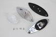 Replica Indian face fender lamp is constructed with a chrome die cast body mounted to original style base with bulb. The white face lens is one piece. *NOTE: To gain access for wiring remove the two phillips head screws and remove the top.