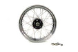 16 X 3.00 front or rear wheel assembly includes chrome rim chrome spokes and a black hub. Front or rear wheel assembly also includes lock screw seal spacer tube spacer and one bearing. This hub utilizes one bearing in the hub and must be supported on the other side by a brake drum or our front brake disc flange adapter. The front brake drum uses one bearing rear drum sprocket uses 2. The valve stem hole is on the star side of the hub. **NOTE: All spokes on wheel need to be inspected and re-torqued after 500 miles of original installation.