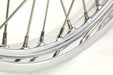Replica 21 X 2.15 dual disc wheel assembly features chrome rim stainless steel spokes chrome hub with internals. **NOTE: All spokes on wheel need to be inspected and re-torqued after 500 miles of original installation. *Note: UPS may consider this part as packaged oversize for shipment as compared to the actual weight which will result in higher shipping costs.