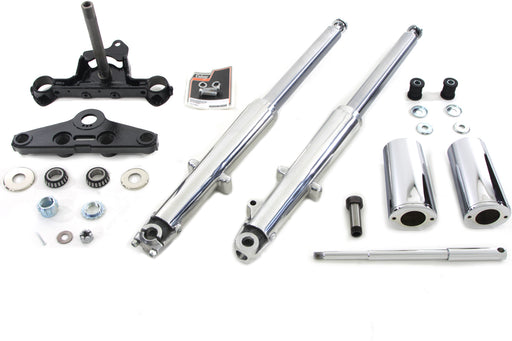 V-TWIN MANUFACTURINGIn stockFXR style single disc hard chrome fork tube assembly with chrome sliders for single disc applications. Includes chrome triple trees without reflect...