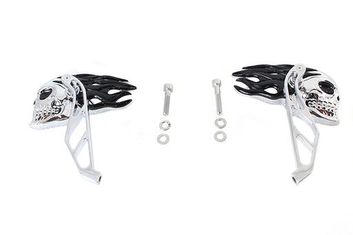 V-TWIN MANUFACTURINGIn stockFlame skull mirror set features black flames over a chrome mirror body. Set includes right and left sides. FITMENT 1982 / UP XL 1982 / UP FX 198...