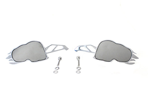 V-TWIN MANUFACTURINGIn stockMirror set is tear drop shaped with a tribal design. The stems are billet and constructed of aluminum featuring a chrome finish. Sold as a pair.FIT...