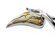 Chrome billet tear drop mirrors feature gold flame inlay backs and flame style billet stems. Set includes right and left sides.