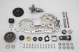 Shovelhead cam chest kit includes a chrome finish cast cam cover and all internal parts for assembly. NOTE: Check the pinion and cam gears tolerance during assembly.
