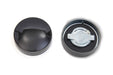 Gas and oil cap set features a black finish.
