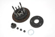 Clutch hub with friction plate and bearings installed. This includes 3 hub nuts a top spring plate and lock tab.