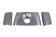 Chrome triple tree cover kit has a 3 rib design. Features hydraglide emblem embossed on cover. Kit includes left and and right panel and front panel. Restoration quality is exact for 1955-59 but will fit all 1949-59 FLH models.