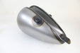 Gas tank has a right side petcock opening fuel capacity of 2.2 gallons and a center cap fill. It comes with a screw-in gas cap bung and has front and rear mount tabs. Check the tank for flaws and fit before painting. It requires sanding and primer. Do not grind or sand the seams or joints. Check the petcock opening making sure the petcock can be easily installed. The petcock fitting should be masked or plugged during painting for easy installation of the petcock. The petcock must be ordered separately. It is suggested to pressure test and use a tank sealer. We suggest using Kreem gas tank combo kit to clean condition and seal to help stop leaks and prevent corrosion. *Note: UPS may consider this part as packaged oversize for shipment as compared to the actual weight which will result in higher shipping costs. The petcock measures 5/8 x 18 and the bung on left side is 1/2 x 20. *NOTE: Gas tank uses screw in JD gas cap available separately.