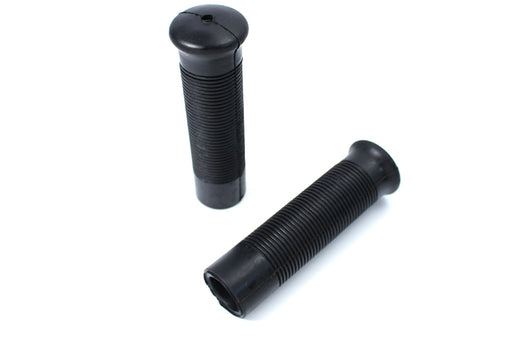 V-TWIN MANUFACTURINGIn stockThese black rubber 1909 style grips will give your modern bike a cool retro style. Grips are for a 1 and 1-1/8 handlebar. Sold in a quanity of 2....