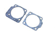 Cylinder base gasket set for late Panhead top end cases. Set is for use with drain thru cylinder wall into bore and features feed holes.