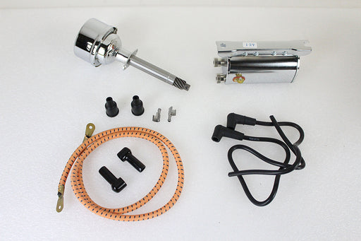 V-TWIN MANUFACTURINGIn stock12 volt distributor and coil kit features a chrome automatic advance distributor a metal jacketed black coil and vintage wire set with boots *NOTE...