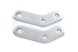 Chrome passenger mount bracket set elevates peg position for custom exhaust. Set of two. Distance between bolt holes measures 2-1/2 top to center and 1-1/2 center to bottom. Bolts available separately; V-Twin #37-0020 chrome bolt set and #37-1679 zinc bolt set.