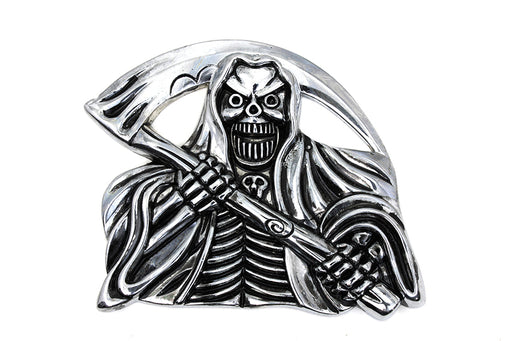 V-TWIN MANUFACTURINGOut of stockPewter grim reaper with sickle emblem measures 4 x 3 with an adhesive back. FITMENT 0 / All modelsMEASURMENTSLength: 4 inchesWidth: 3 inchesAC...