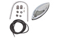 Early style fender lamp is a reproduction which are chrome plated over steel. Replica front fender lamp kit includes clear glass lens and light wire and hardware kit. NOTE: Inside of glass lens is frosted as original! *NOTE: Steel mount base has brass terminal block in center for wire connection.