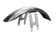 Narrow front fender has a raw finish and includes chrome braces riveted on. For use on 19 or 21 tires only. Fender brace mount measure 3 center to center. Before priming or painting fit the fender body braces and mounting points in place. Fender rivets hinge and brackets will have to be tweaked for final fitment. Patience is required for proper installation! *Note: UPS may consider this part as packaged oversize for shipment as compared to the actual weight which will result in higher shipping costs.