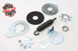 Zinc foot clutch friction kit with parkerized springs. Kit includes 1 inner and 1 outer clutch spring with parkerized finish. All other parts are zinc: 1 friction disc & bracket 1 fiber washer 1 clutch disc 2 spider washers 1 rocker tab washer 1 pedal nut and 1 Replica V-twin shield patch.